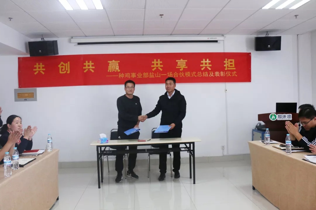 10月5日下午,集團(tuán)組織了鹽山種雞一場(chǎng)新模式總結(jié)分享會(huì)。對(duì)本場(chǎng)本批次參與新模式的郭明、李玉晨、王克前、郭敬等4名管理人員進(jìn)行了表彰激勵(lì)。